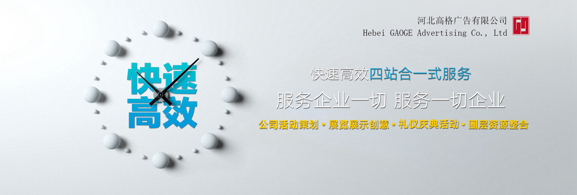 河北高格廣告有限公司是一家專(zhuān)業(yè)致力于大型文化活動(dòng)組織策劃、展覽展示工程策劃、展臺(tái)設(shè)計(jì)制作、特裝展臺(tái)搭建、會(huì)議會(huì)場(chǎng)布置、巡回展覽、路演、公關(guān)推廣執(zhí)行、會(huì)議慶典禮儀、路演設(shè)備租賃、倉(cāng)儲(chǔ)等一站式的專(zhuān)業(yè)服務(wù)公司。本公司憑借創(chuàng)新領(lǐng)先的服務(wù)理念,大型的廠(chǎng)房空間,現(xiàn)代化的機(jī)械設(shè)備,高素質(zhì)專(zhuān)業(yè)的服務(wù)團(tuán)隊(duì),及在該行業(yè)多年的實(shí)戰(zhàn)經(jīng)驗(yàn),為地產(chǎn)營(yíng)銷(xiāo)提供了優(yōu)秀的活動(dòng)方案、為不同行業(yè)的數(shù)千家企業(yè)提供了專(zhuān)業(yè)個(gè)性化的空間展示方案,幫助客戶(hù)實(shí)現(xiàn)了自我品牌的提升和企業(yè)利潤(rùn)的雙贏。...